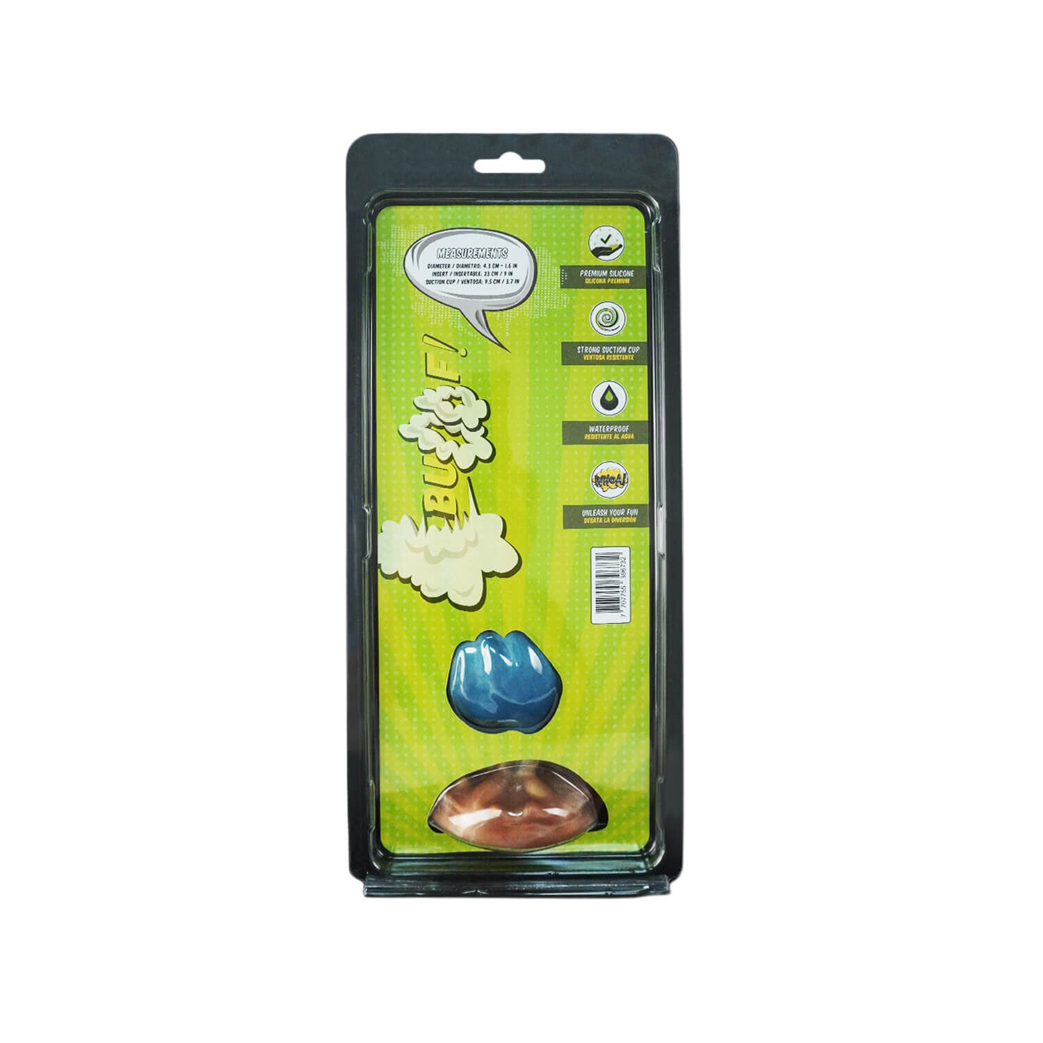 - Diámetro: 4.3 cm - Insertable: 23 cm - Ventosa: 9.5 cm