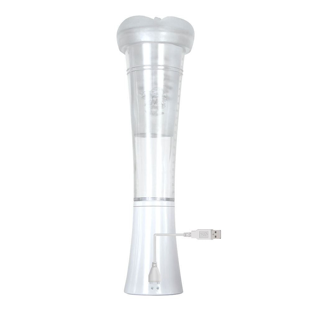 El Masturbador Masculino Sucking Recargable es un juguete divertido con una bomba al vacío que succiona y libera en alternancia el pene para que se cumplan fantasías sexuales desde casa.