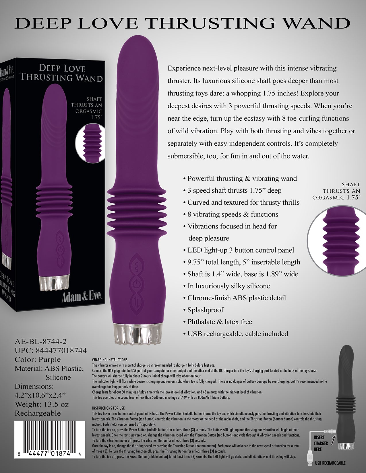 • Potente vibrador tipo hitachi y penetrador • 3 velocidades de penetración con hasta 4.4 cm de profundidad • Diseño texturizado y curvado para emociones más fuertes • Vibraciones focalizadas en la cabeza del juguete • Panel de control de 3 botones con iluminación LED