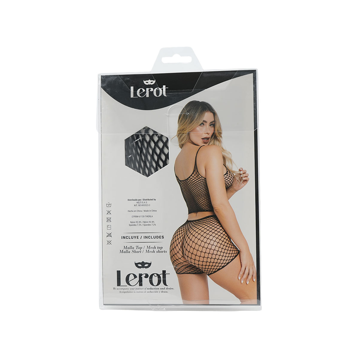 Atrévete a seducir con el conjunto Twerla, una prenda de lencería erótica que destaca por su diseño único y sensual. Confeccionado en malla de red, este conjunto de top y short resalta tus curvas de manera impresionante, ofreciendo una combinación perfecta de comodidad y estilo atrevido.