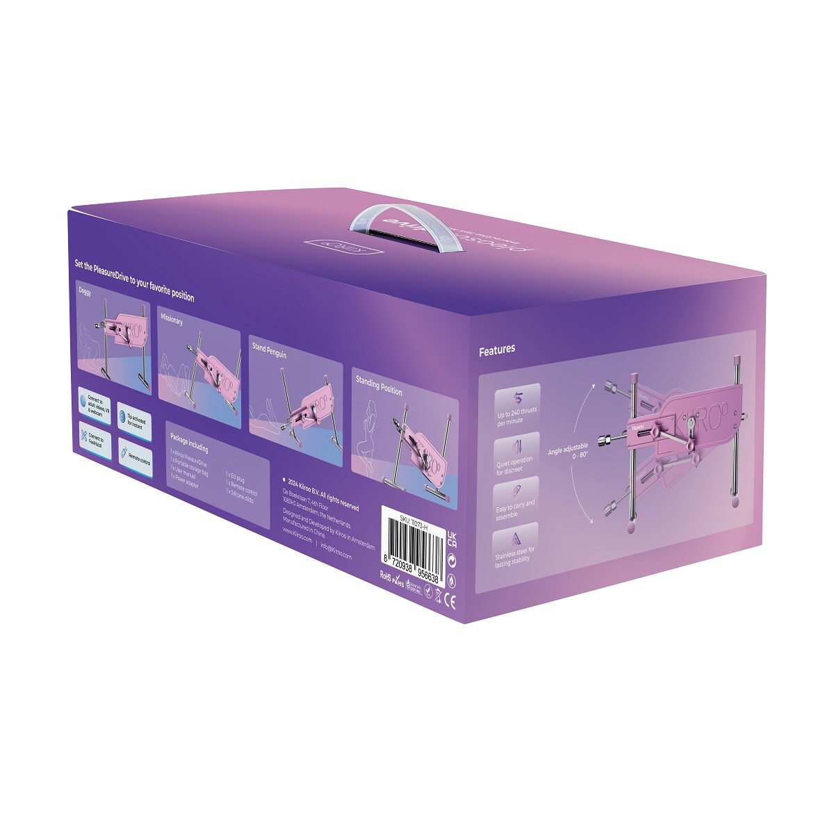 PleasureDrive es fácil y rápida de ensamblar. Su construcción premium de 7 kg en acero inoxidable y aluminio garantiza que se mantenga firme sin importar la intensidad de tu sesión. Hablando de intensidad, su potente motor de 70W puede alcanzar hasta 240 impulsos por minuto con un funcionamiento ultrasilencioso, asegurando que nadie en casa se entere. Además, puedes guardarla de forma compacta y discreta en la bolsa de transporte incluida.